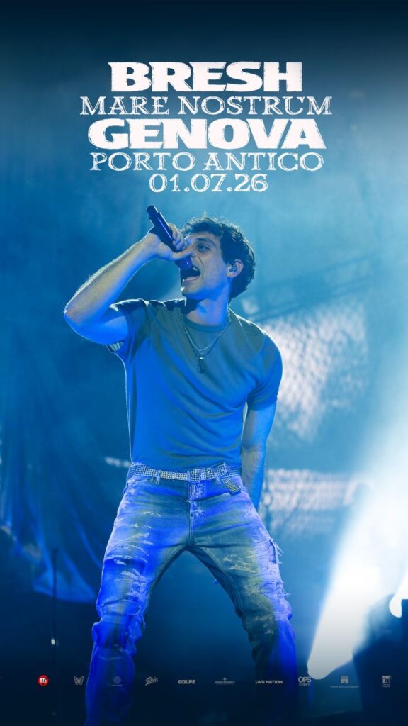 Il 1° luglio 2026, BRESH torna al Porto Antico di Genova con Mare Nostrum, una data speciale del suo Mediterraneo Tour. Un ritorno alle origini, tra il mare, la città e la sua gente, per un live unico proprio dove tutto è cominciato.