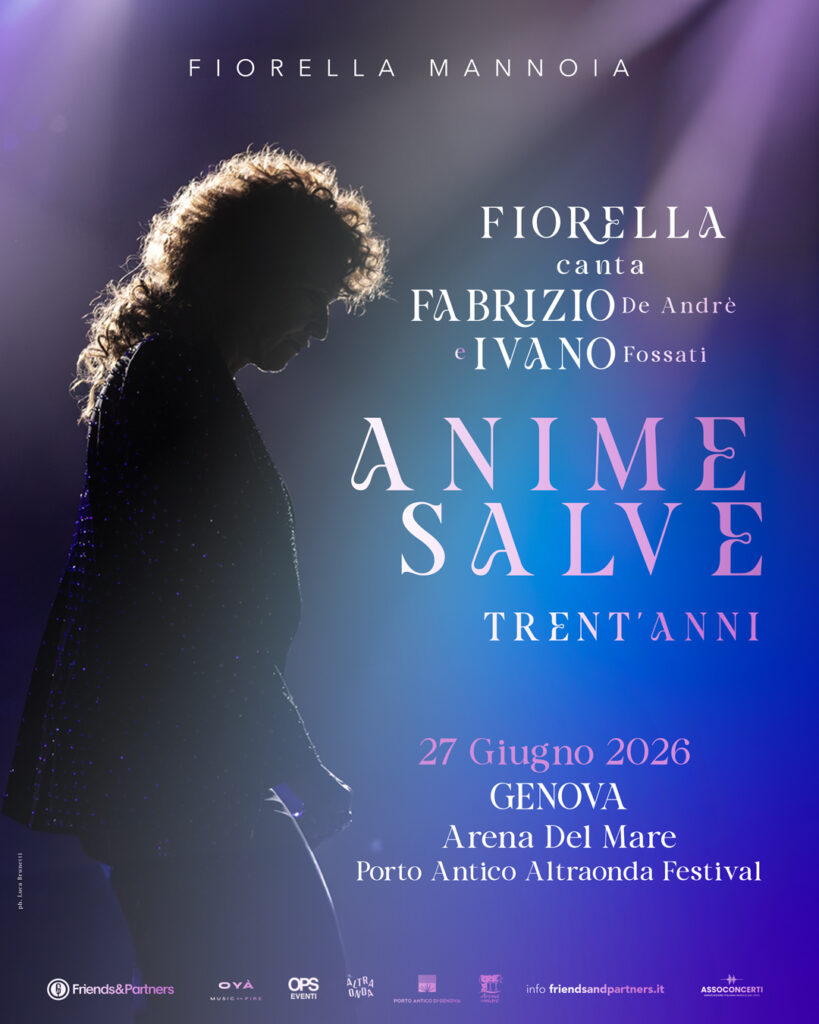 Fiorella Mannoia apre da Genova il suo nuovo tour “Fiorella canta Fabrizio e Ivano – Anime Salve”, portando sul palco le parole e la musica di due giganti: Fabrizio De André e Ivano Fossati.